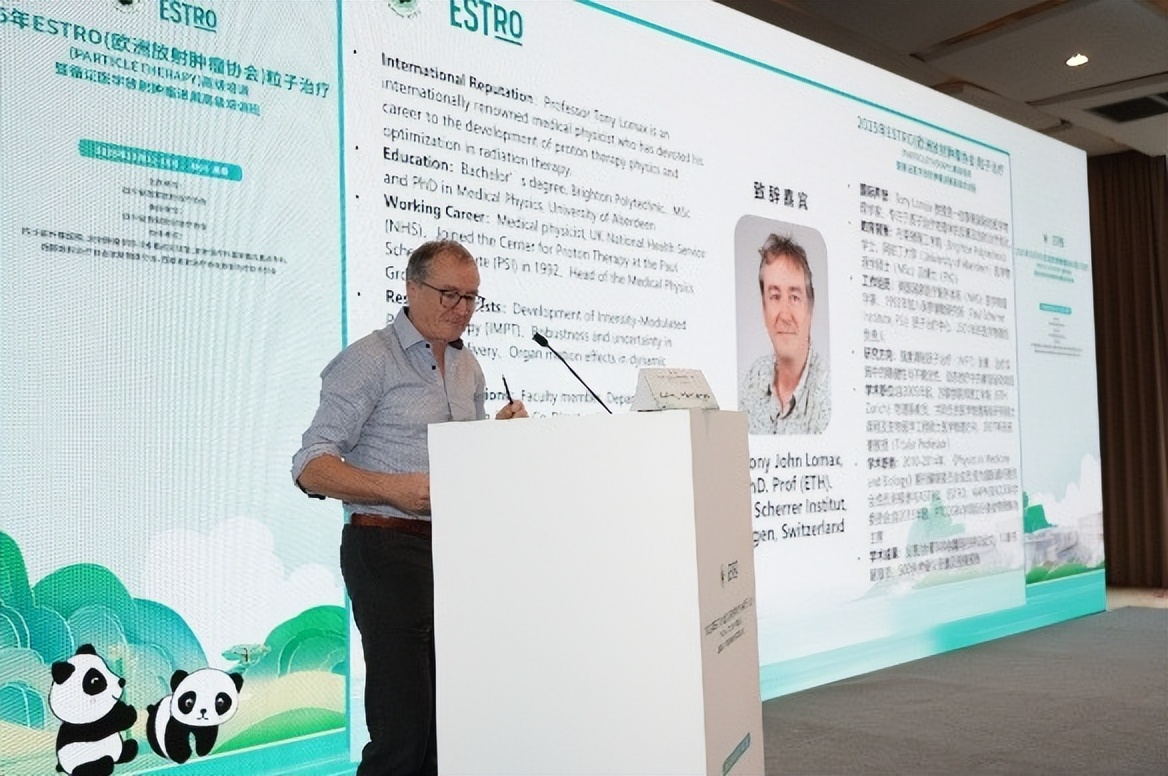 随后,ESTRO代表Antony John Lomax教授发表致辞。他首先对西部放射治疗协会及四川省肿瘤医院的精心组织表示衷心感谢,并介绍了ESTRO在推动全球放射肿瘤学科发展中的重要作用。他指出,粒子治疗以其独特的物理学特性和生物学优势,为肿瘤患者特别是儿童肿瘤患者带来了新的希望。Antony教授表示,非常高兴能够与中国同行分享欧洲在粒子治疗领域的先进经验和最新研究成果,并期待通过此次培训加强中欧在放射肿瘤领域的深度合作,共同推动全球肿瘤治疗技术的进步,造福更多患者。